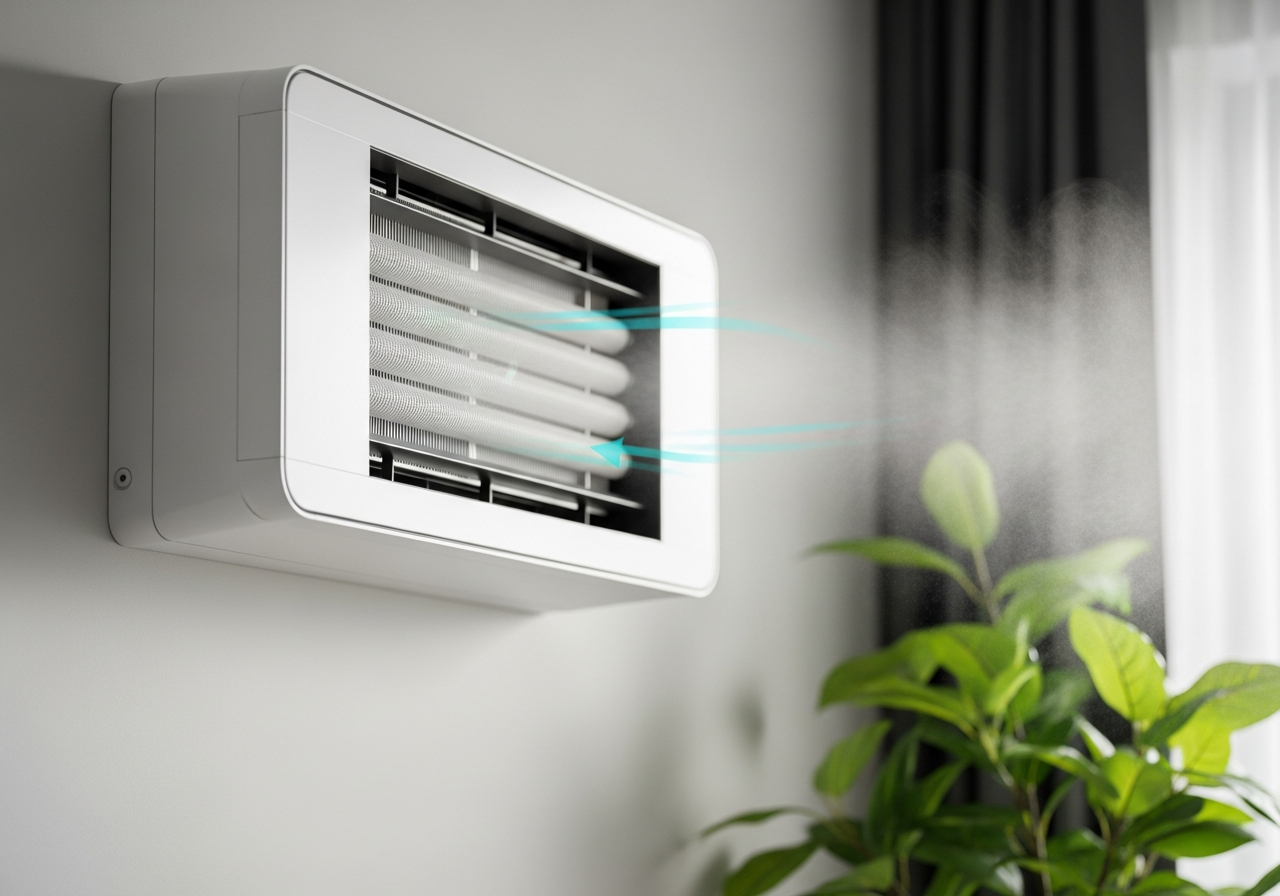 Zimą rekuperator z wymiennikiem entalpicznym sprytnie odzyskuje wilgoć z powietrza z łazienek czy kuchni, nawilżając suche powietrze z zewnątrz. Latem działa odwrotnie, co wspiera klimatyzację, częściowo osuszając gorące i wilgotne powietrze, które napływa do środka. Ten zaawansowany system odzysku energii i wilgoci często nazywamy ERV (Energy Recovery Ventilator).