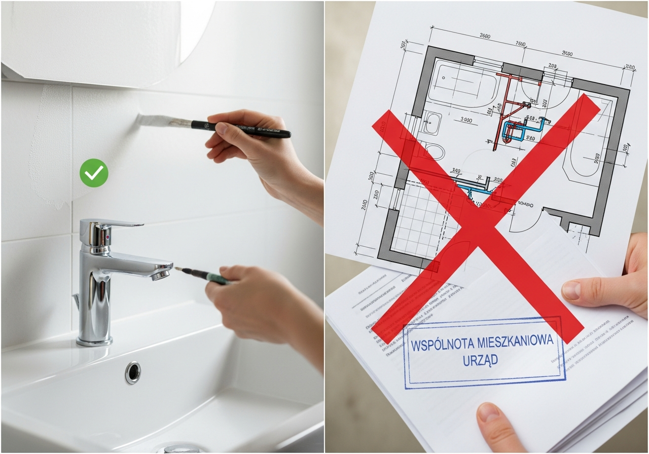 Pomyśl o tym tak: czy Twoje prace dotkną ścian działowych, ścian nośnych, instalacji wodno-kanalizacyjnych, ogrzewania, wentylacji, albo zmienią miejsce drzwi? To najważniejsze kryterium. Musisz dobrze zrozumieć tę różnicę, żeby wiedzieć, czy potrzebujesz zgody wspólnoty mieszkaniowej, a może i urzędowych pozwoleń. Jeśli źle zakwalifikujesz prace, możesz mieć potem poważne kłopoty.